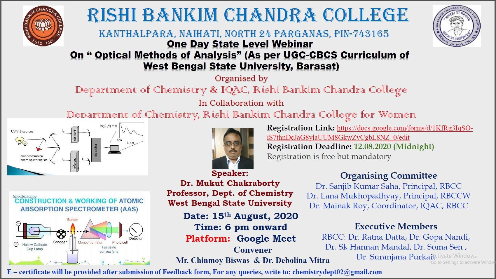 The Department of Chemistry, Rishi Bankim Chandra College for Women, started the journey under the University of Calcutta in the academic field of Chemistry for understanding of classical Chemistry as well as its latest developments in the year 1984 with two esteemed faculty members. A good number of students started the journey with B.Sc general course and thereafter in the year 2001 the department started the Chemistry Honours course under 1+1+1 course schedule. The department has come a long way providing academic excellence to its students. In 2008 the College changed its affiliation to the West Bengal State University. In the year 2018 the department acquired the CBCS pattern for the Honours and pass course students. From 2023 the department started the National Education Policy (NEP)-2020 in its curriculum. Academic excellence of this department is reflected through the achievement and well placement of the students of this department in different academia and industry. Several faculty members of this department also visited abroad with prestigious fellowships. The department has also received financial assistance from the UGC Minor Research Project. Recently one of our faculty received prestigious TAR project in collaboration with IISER-Kolkata from SERB-DST, Government of India. Active research with several other institutional laboratories is also ongoing with the faculty members of this department