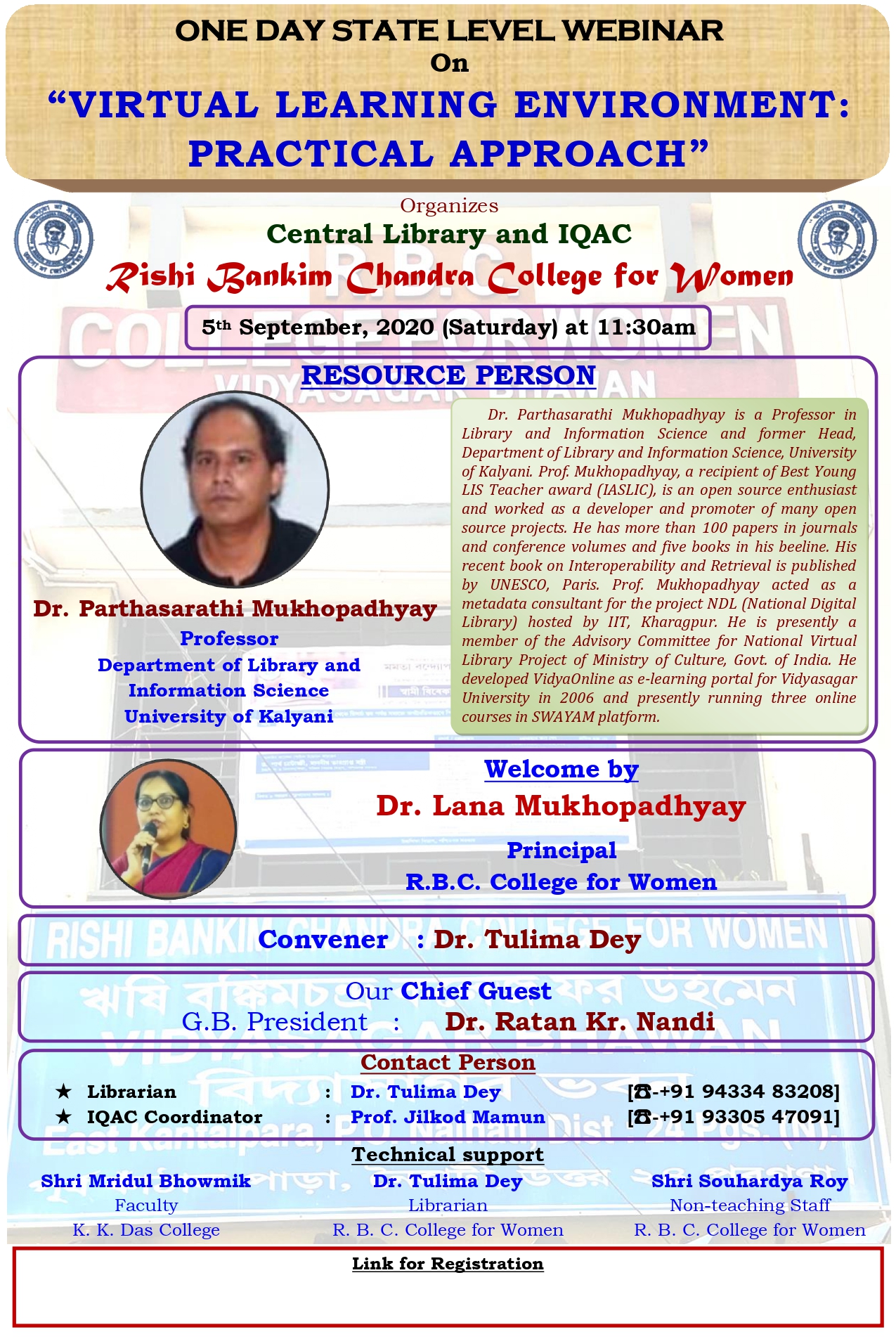 One Day State level Webinar On “VIRTUAL LEARNING ENVIRONMENT:PRACTICAL APPROACH”